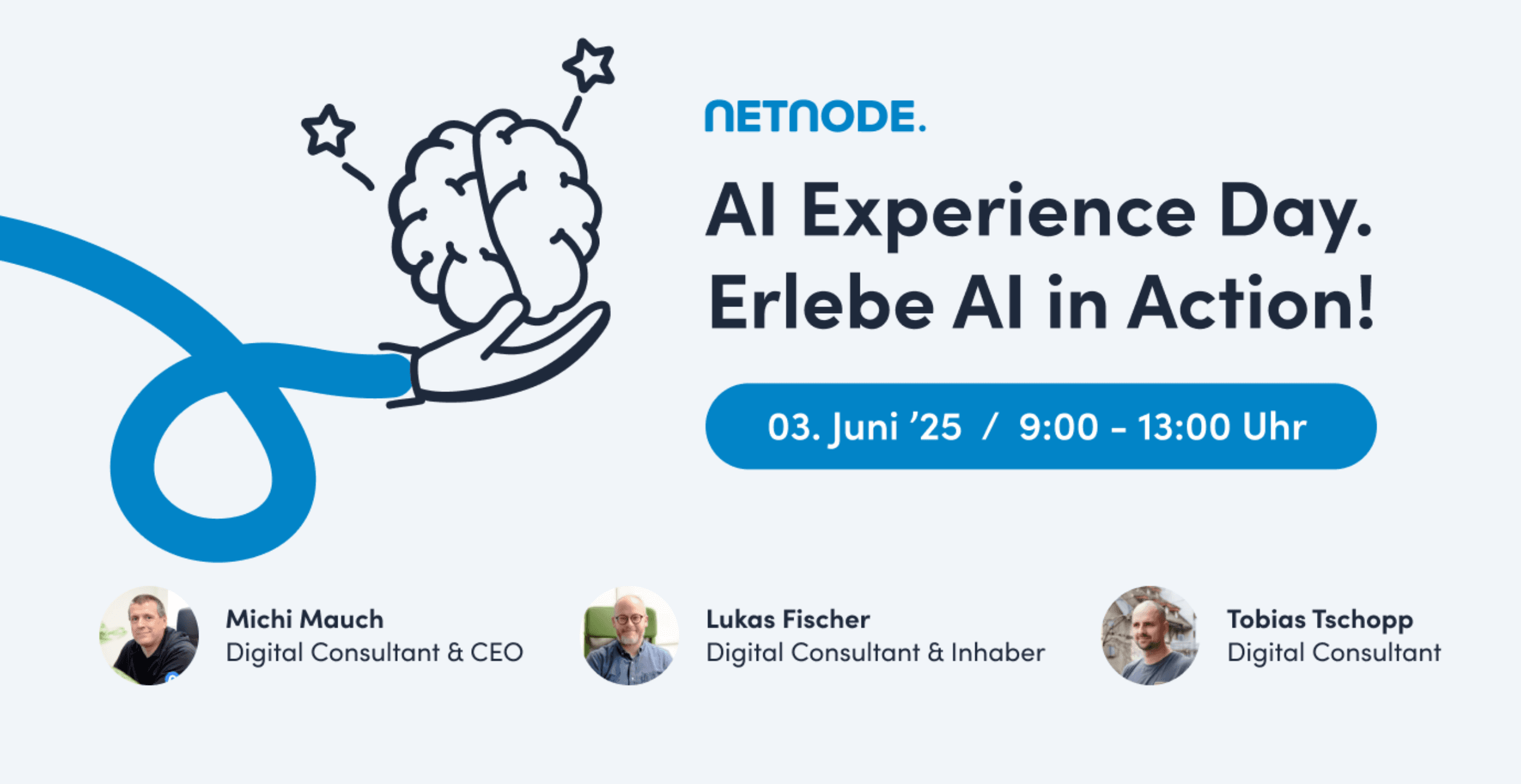 Du möchtest diese Veränderungen selbst erleben und ausprobieren, wie KI in der Praxis funktioniert? Komm zu unserem AI Experience Day bei NETNODE in Luzern. Am 03. Juni zeigen wir dir echte Use Cases, von Content Creation über Datenanalyse bis hin zur Zielgruppenansprache – konkret und live zum Anfassen.